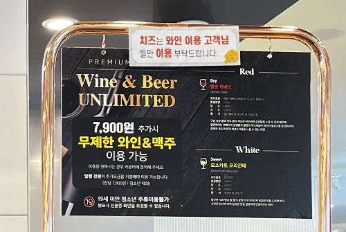 7,900원을  추가하면 무제한으로 와인과 맥주를 즐기실 수 있다니