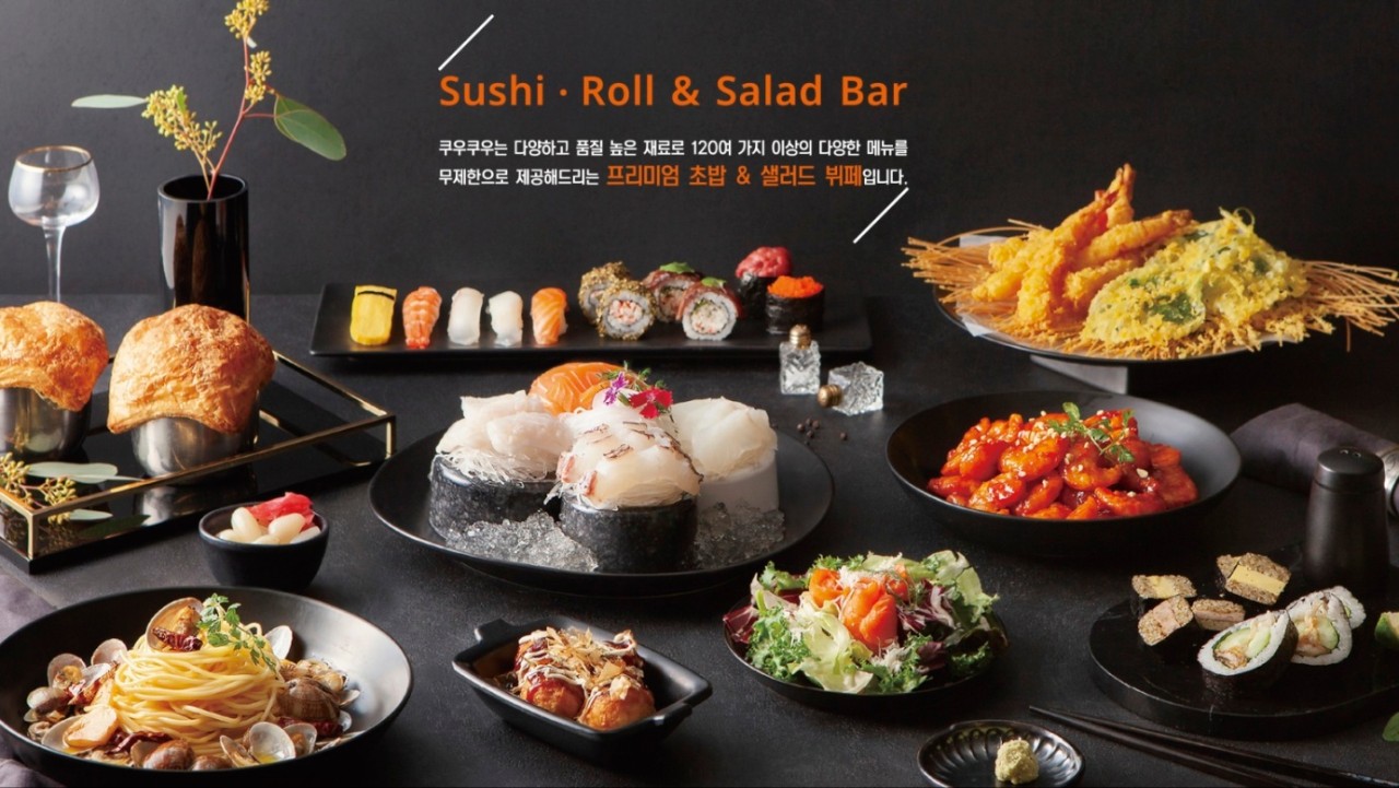 스시라인부터 시작해서 바베큐, 샐러드, 파스타, 피자, 디저트..등등