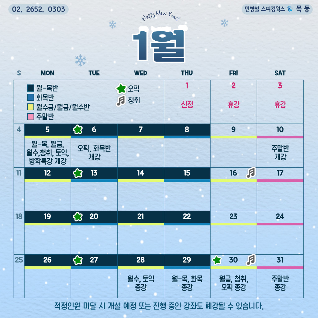 📅 2026년 1월 개강 일정 & 운영 안내