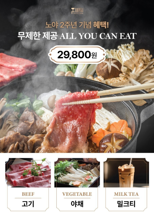 현재 목동현대백화점에 위치한 노야는 2주년 기념혜택으로