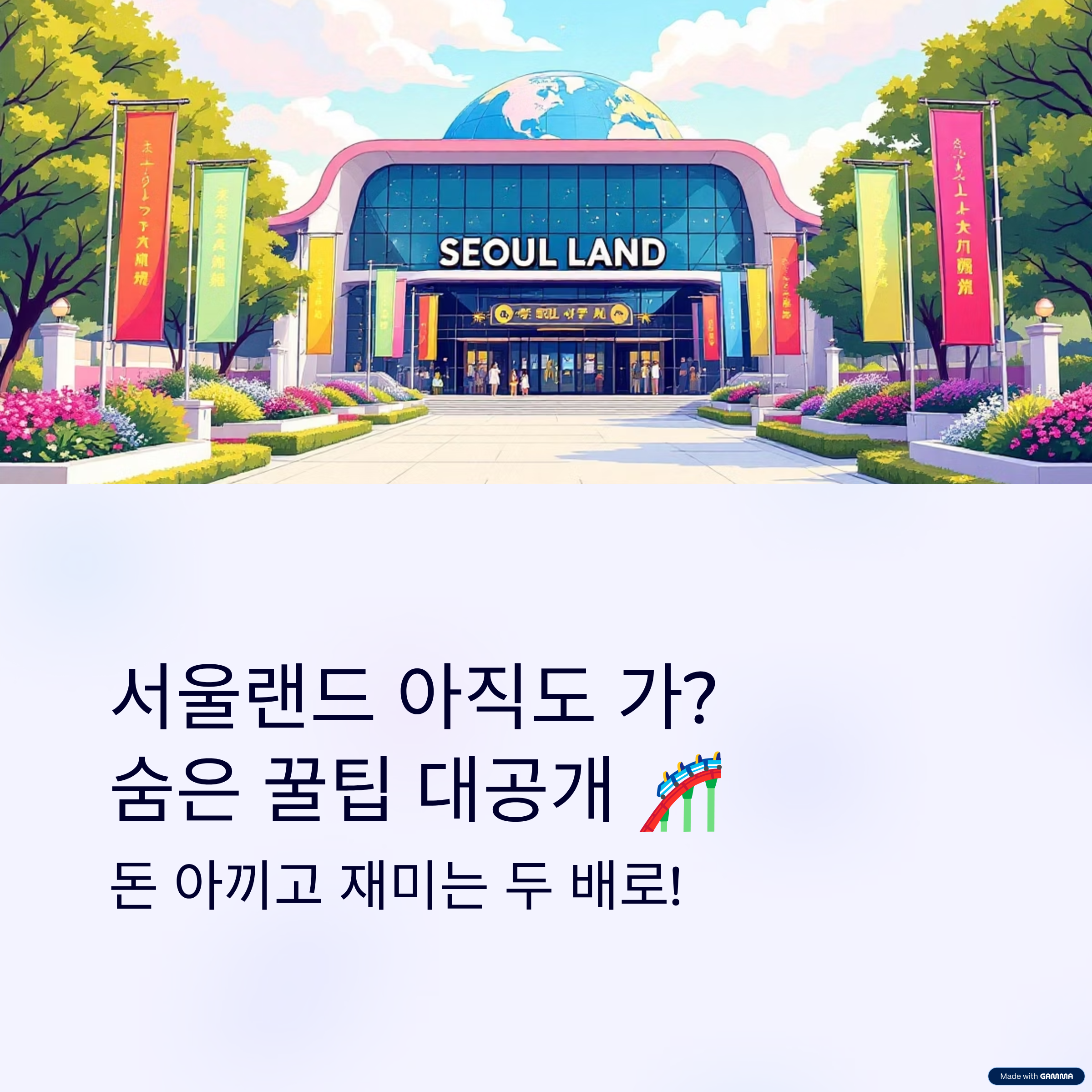 자, 그럼 지금부터 돈은 아끼고 재미는 2배로 늘리는 서울랜드 정복 비법을 시작해 볼까요?