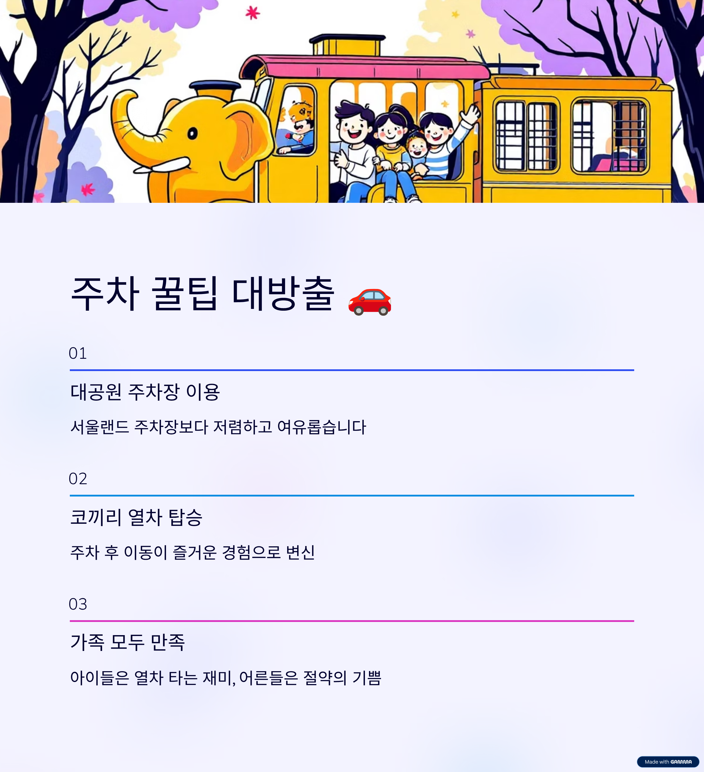 입장료와 주차료를 아껴야 더 기분 좋게 놀 수 있겠죠?