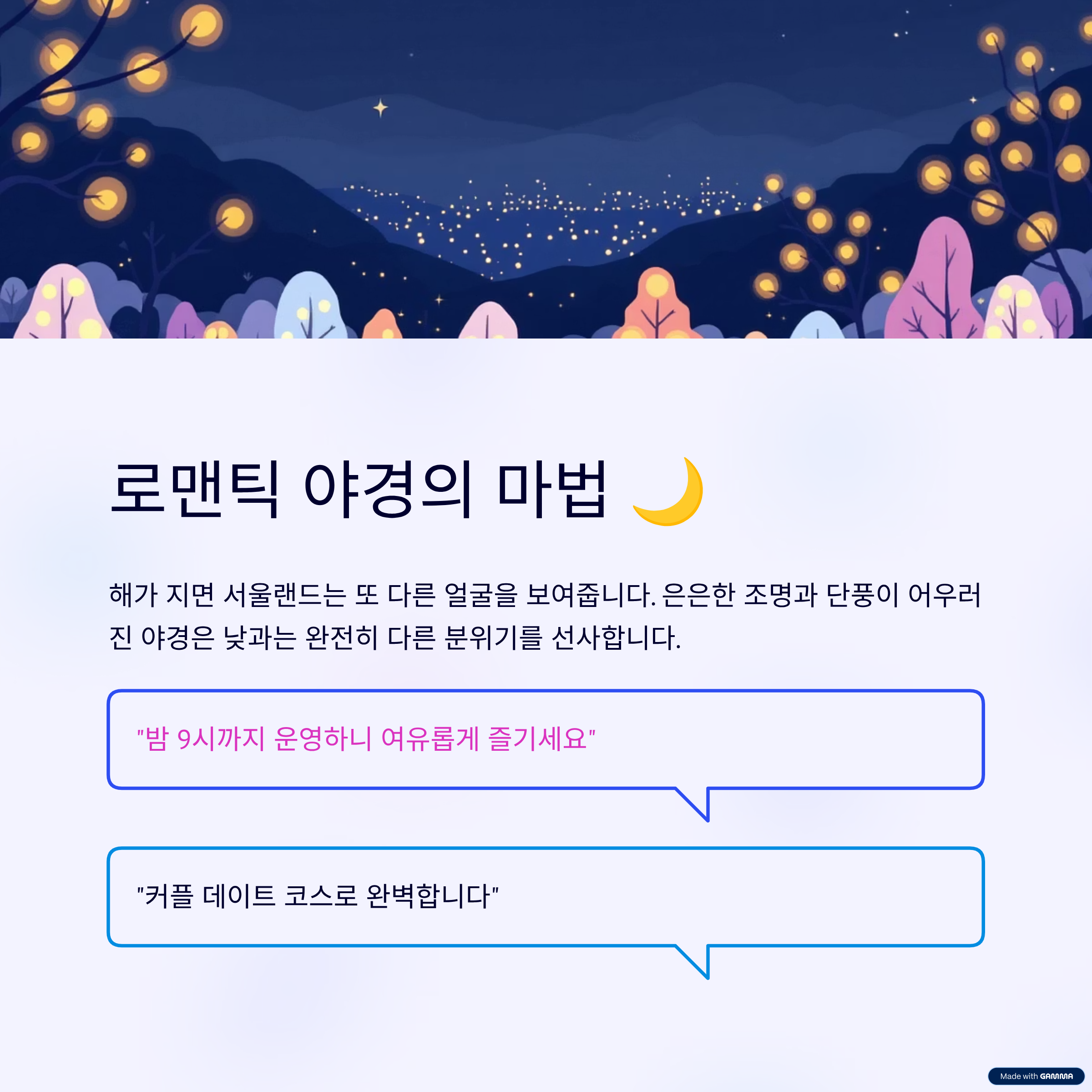 특히 데이트 코스로 마지막을 장식하기에 완벽합니다.